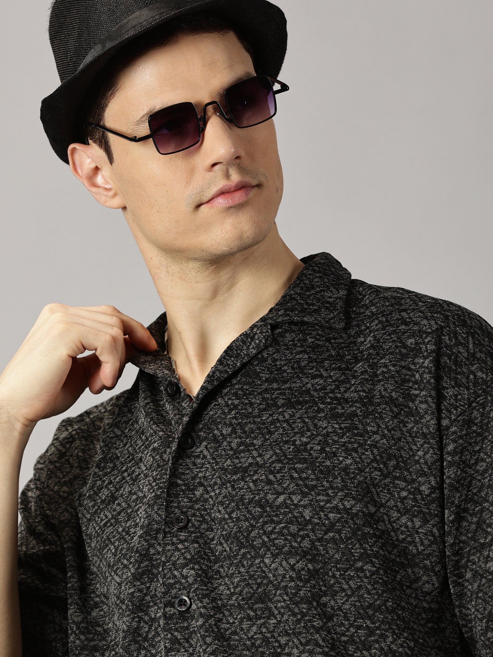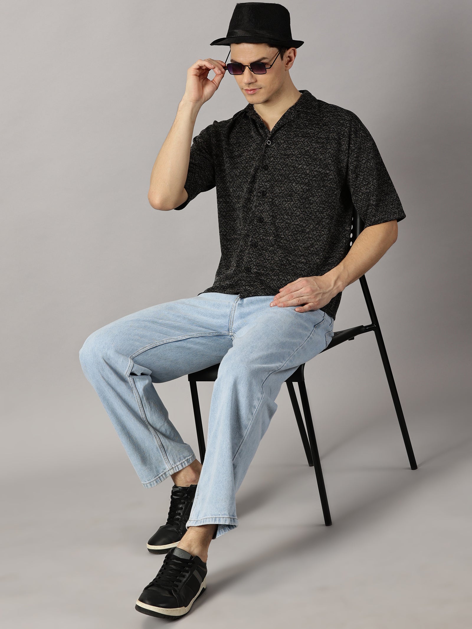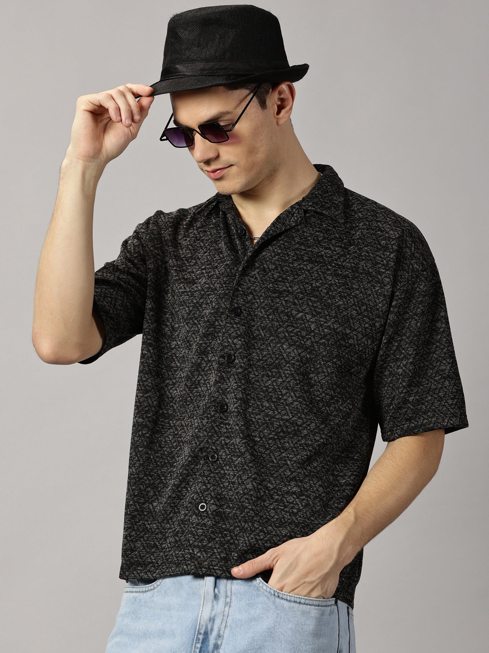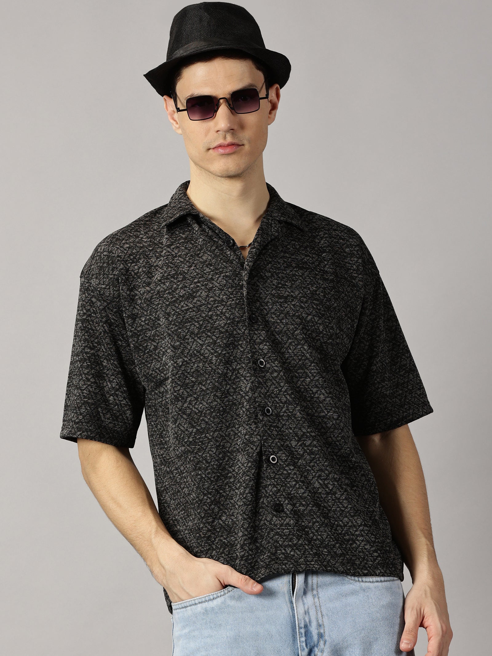 Introducing our Black Textured Oversized Shirt, a versatile and stylish addition to your wardrobe. Made with high-quality fabric for comfort and durability, this shirt features a unique textured design and a relaxed, oversized fit. Perfect for any occasion, look effortlessly chic and comfortable in our Black textured shirt.