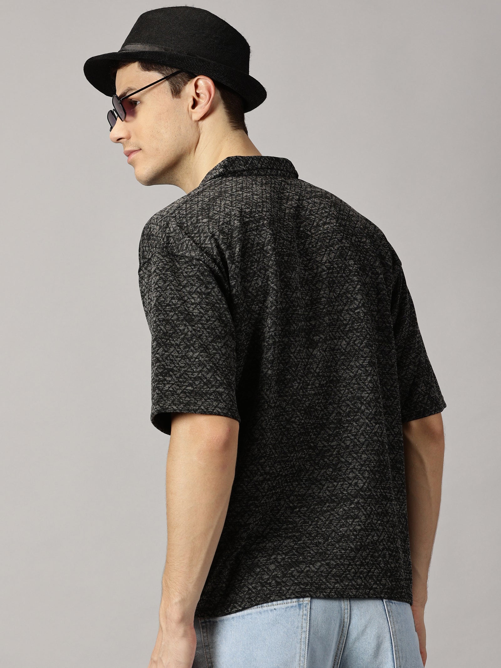 Black Textured Oversized Shirt