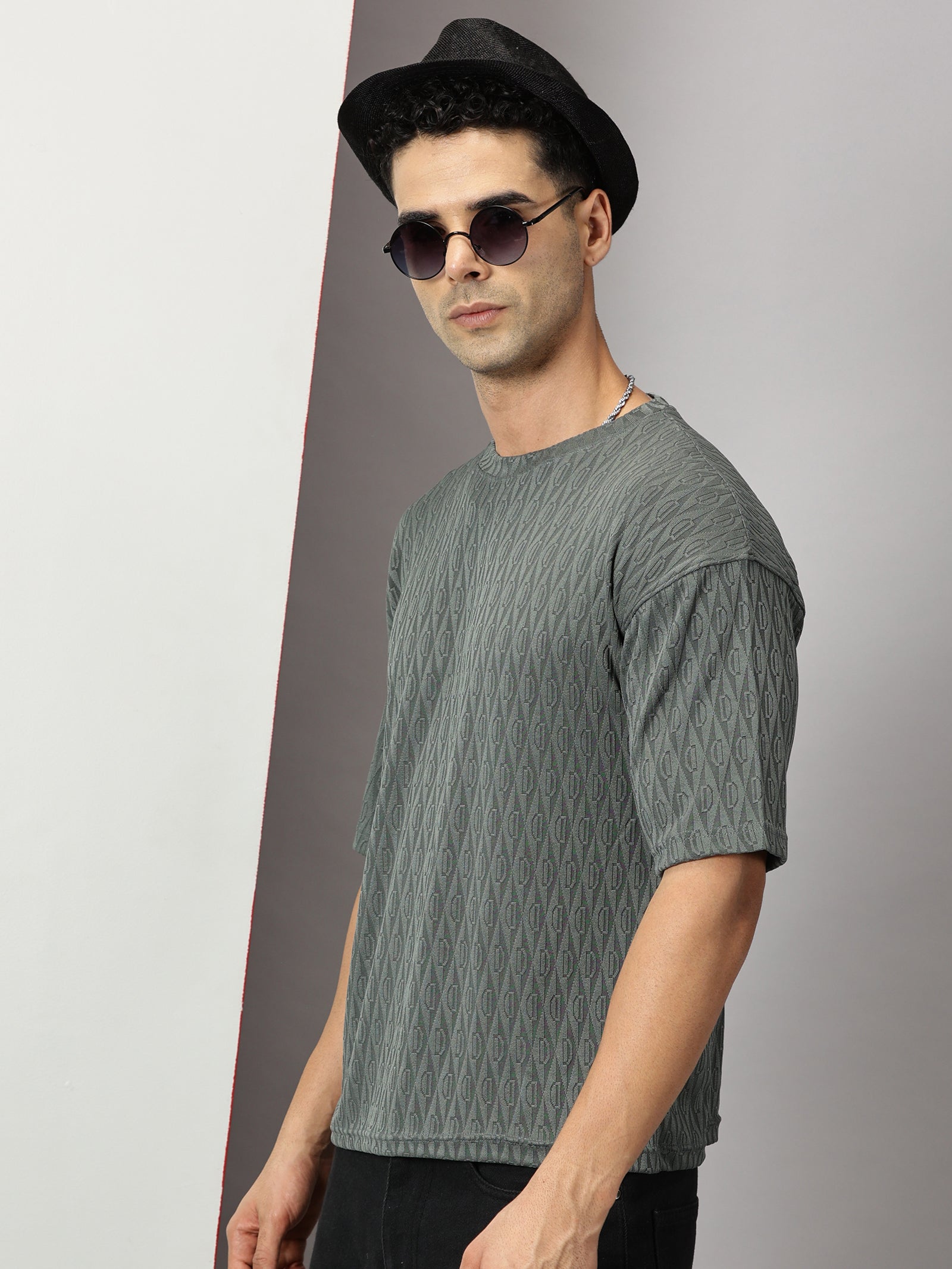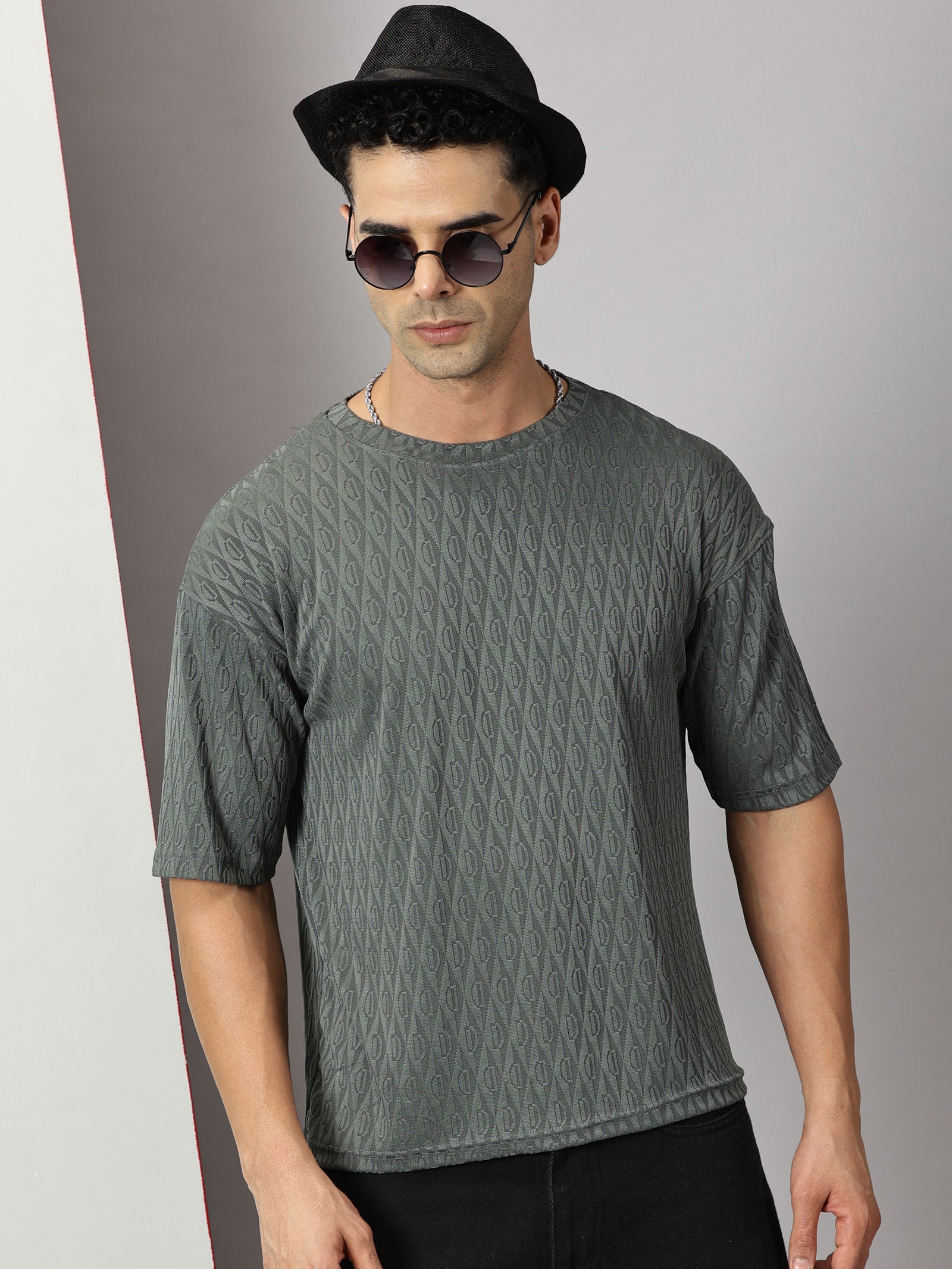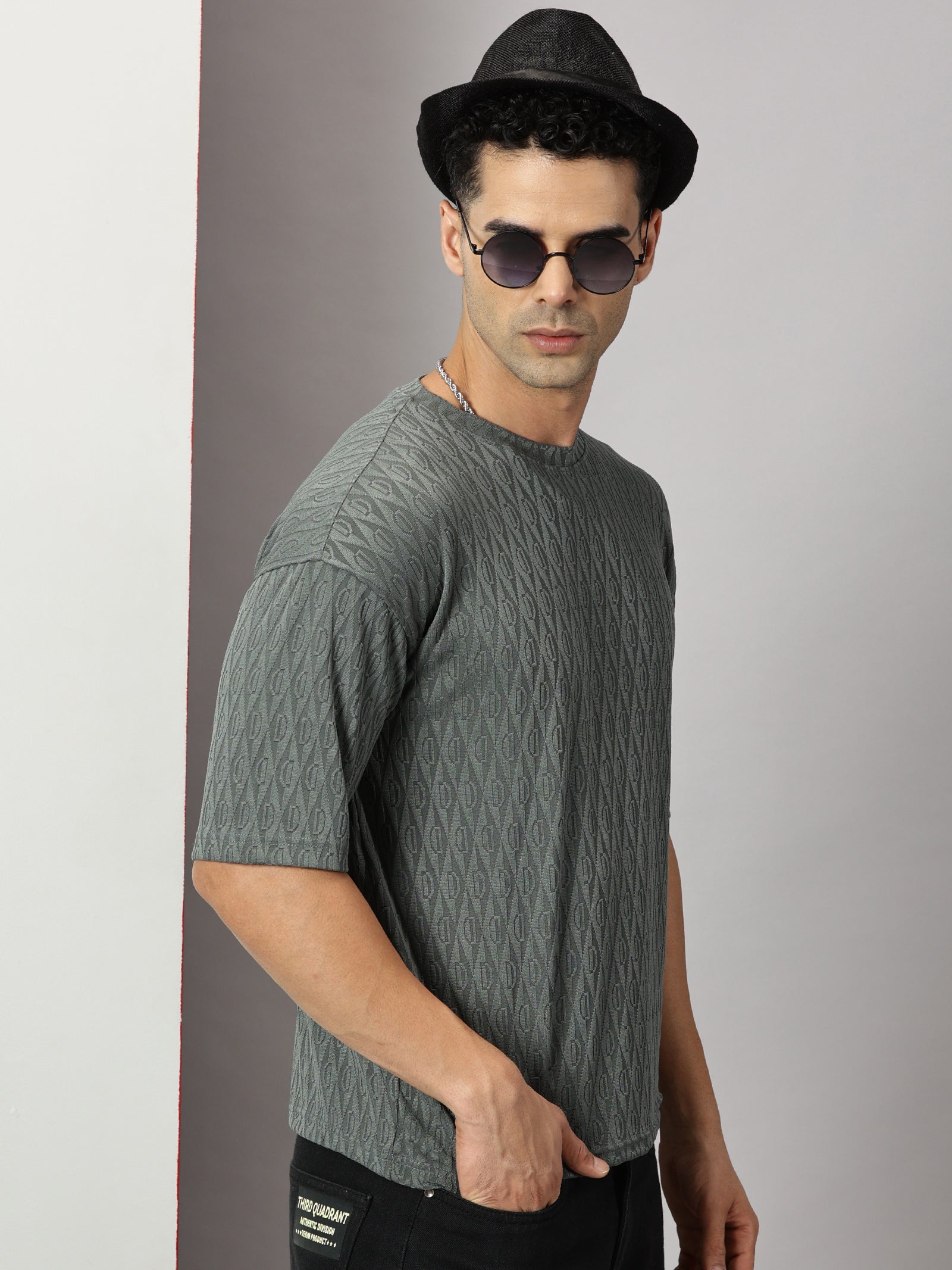 Enhance your wardrobe with our stylish Fiscal Green Oversized Textured Half-sleeve T-Shirt. Made with premium materials, it offers a comfortable and flattering fit. The oversized design and textured fabric make it a versatile and trendy addition to any outfit. Perfect for any occasion, this t-shirt will make you stand out in style.