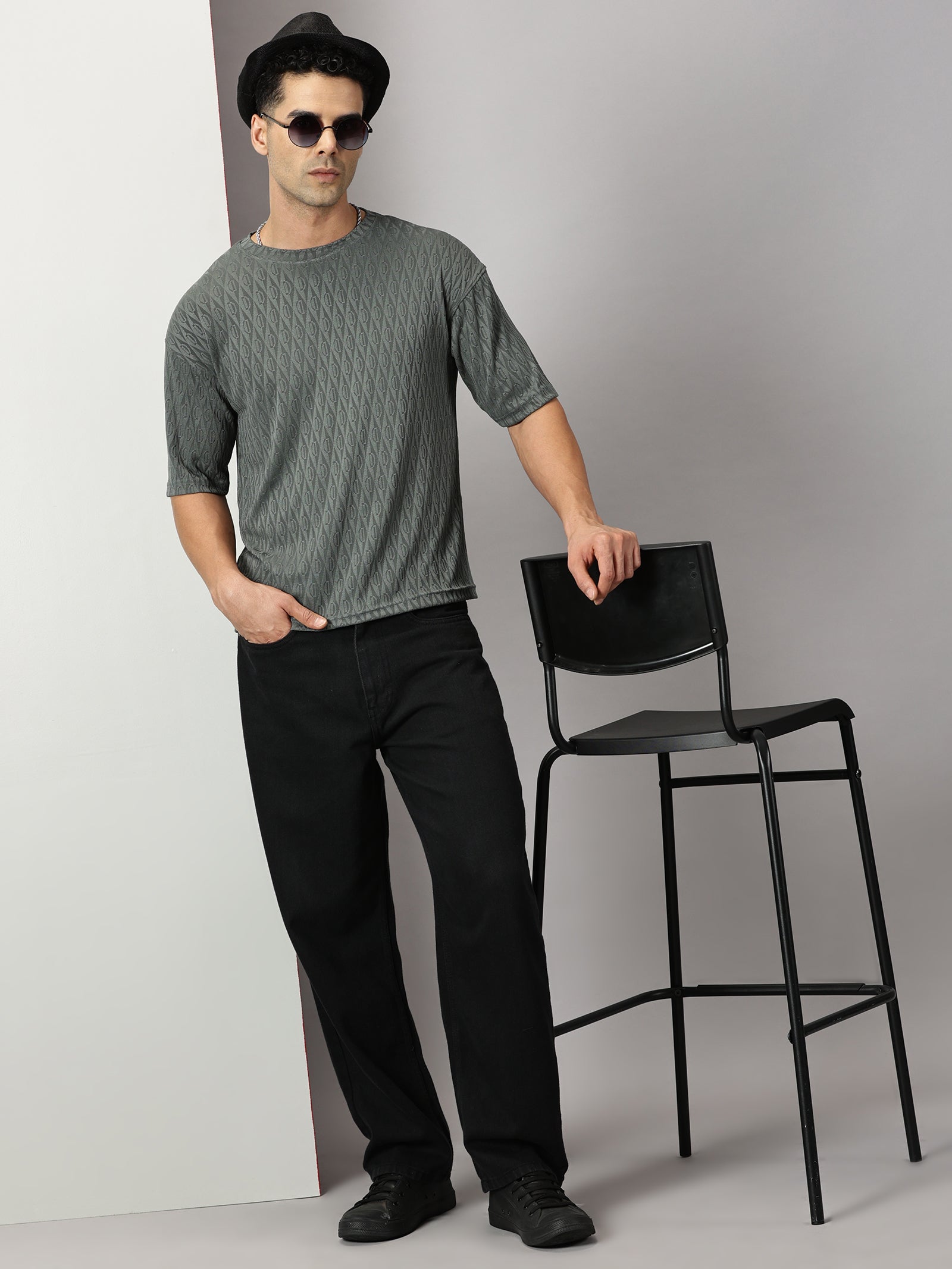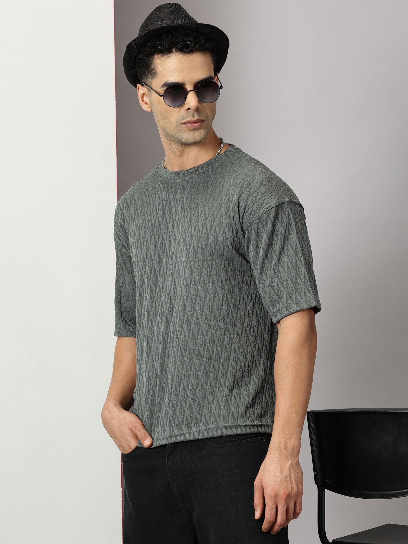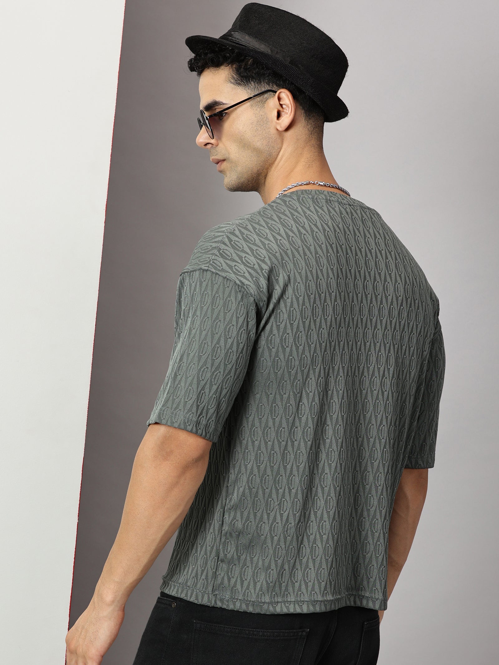 Enhance your wardrobe with our stylish Fiscal Green Oversized Textured Half-sleeve T-Shirt. Made with premium materials, it offers a comfortable and flattering fit. The oversized design and textured fabric make it a versatile and trendy addition to any outfit. Perfect for any occasion, this t-shirt will make you stand out in style.