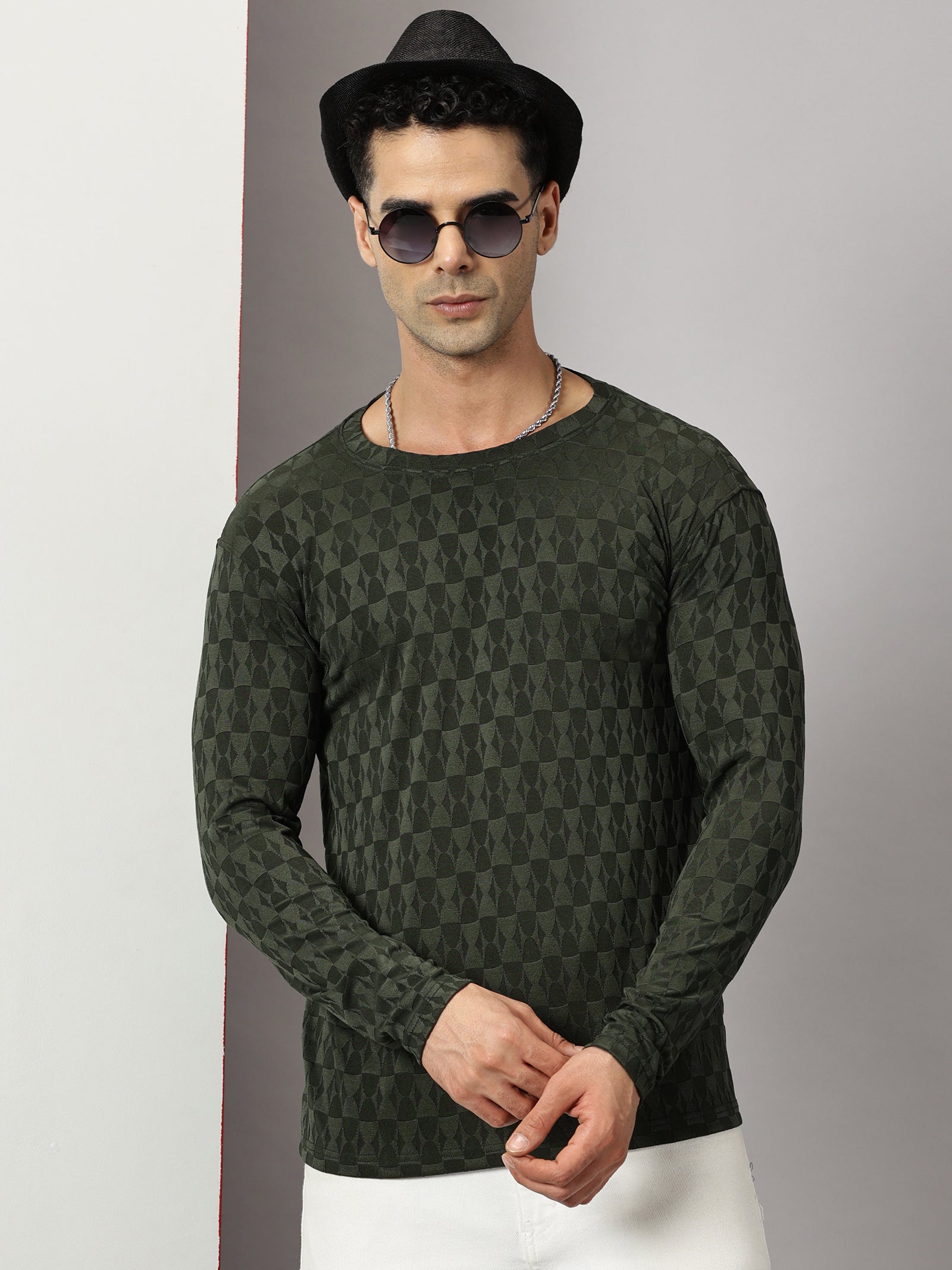 Our Olive Green Textured Full-sleeve T-Shirt, made from quality materials for ultimate comfort and style. The Olive Green textured design adds a touch of sophistication, making it the perfect addition to any wardrobe. Keep cozy and look great in our full-sleeve t-shirt.