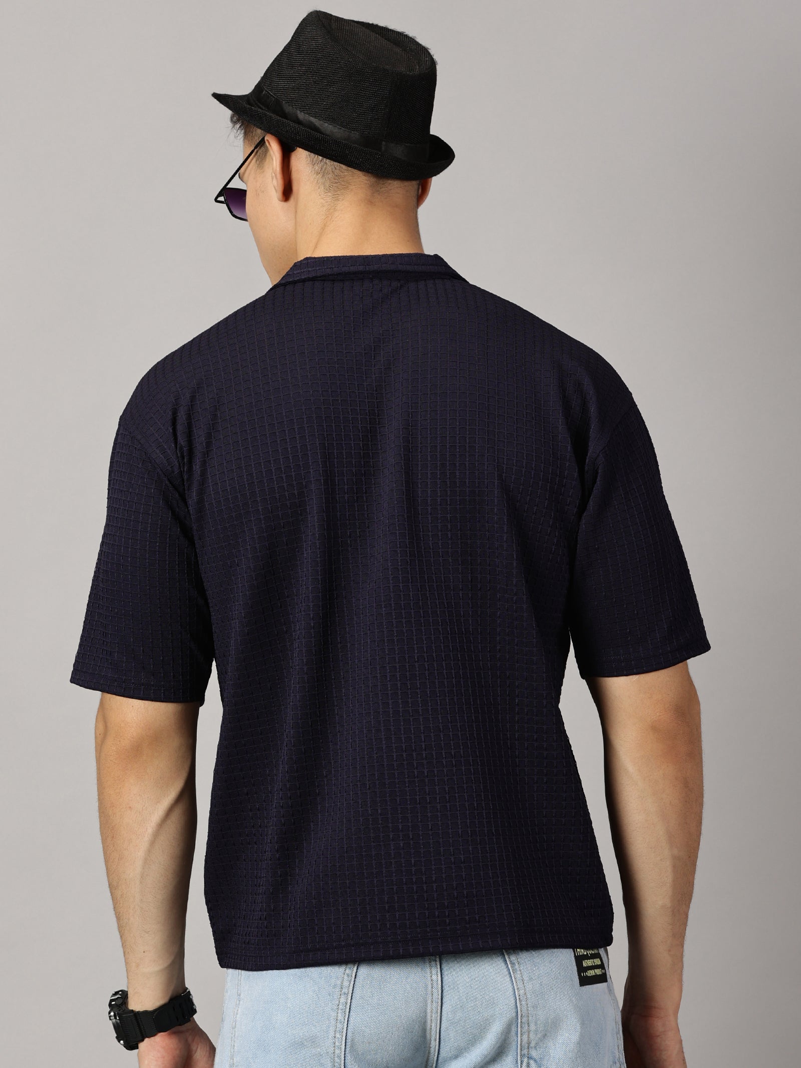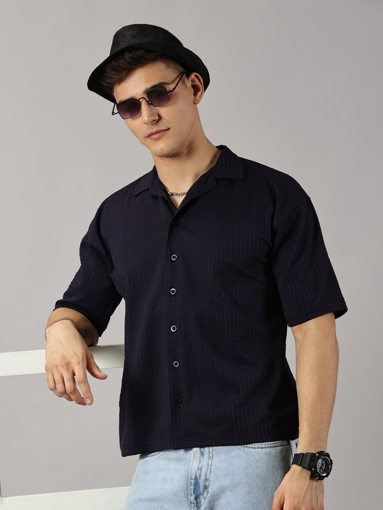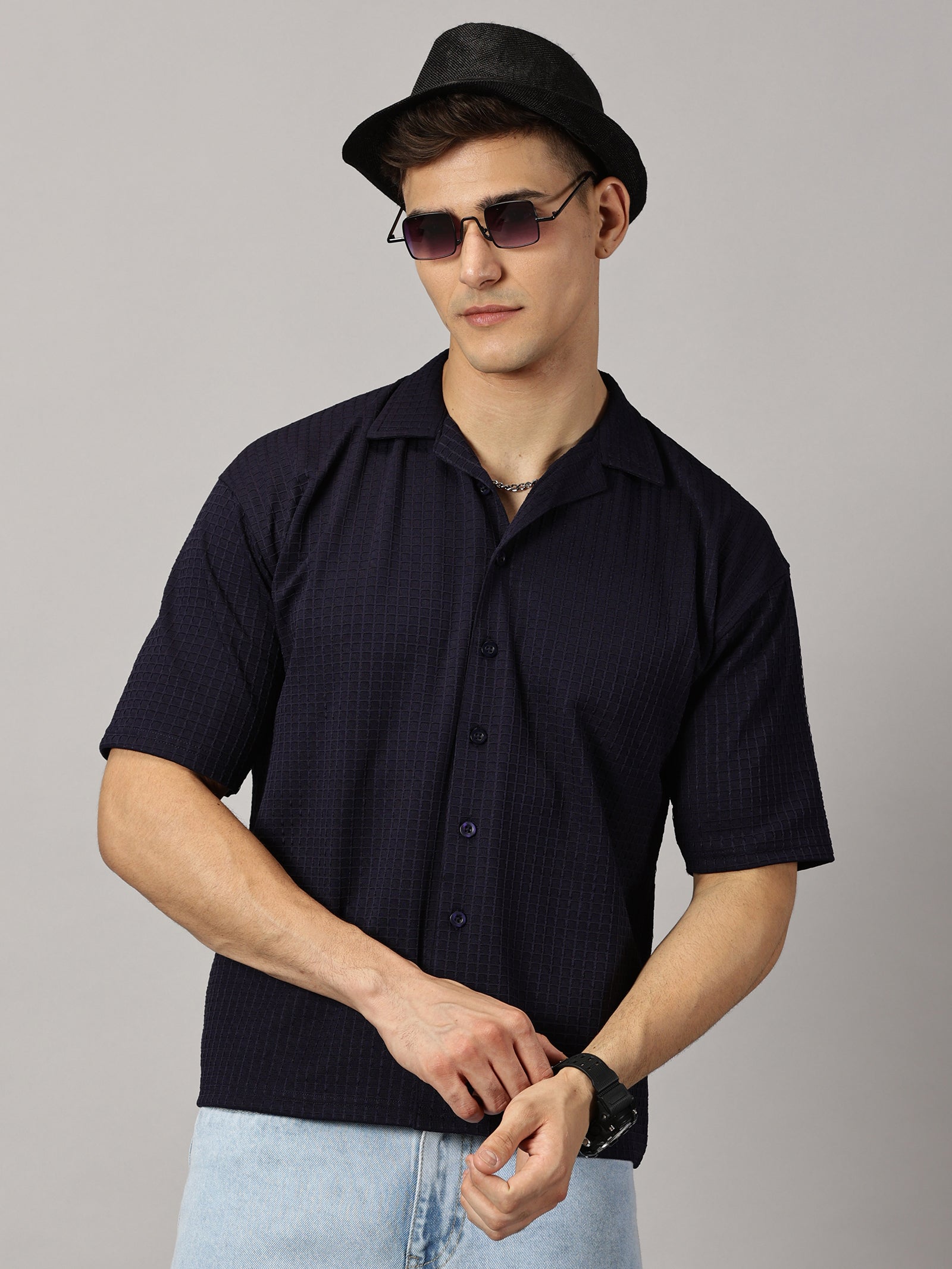 This oversized textured navy shirt is designed for comfort and style. Made with high-quality material, it features a textured design that adds a unique touch to any outfit. Perfect for a casual day out or a dressed-up event, this shirt is a must-have for any fashion-forward individual.