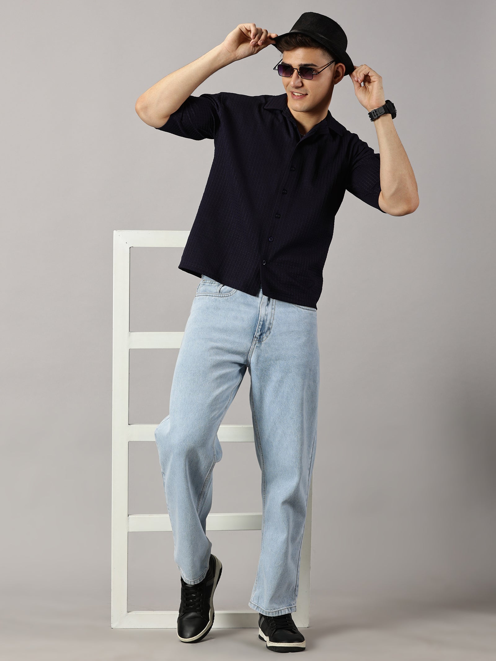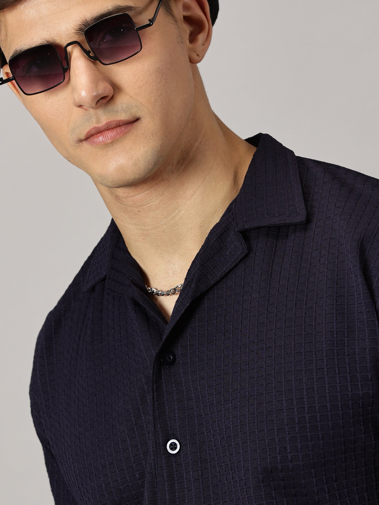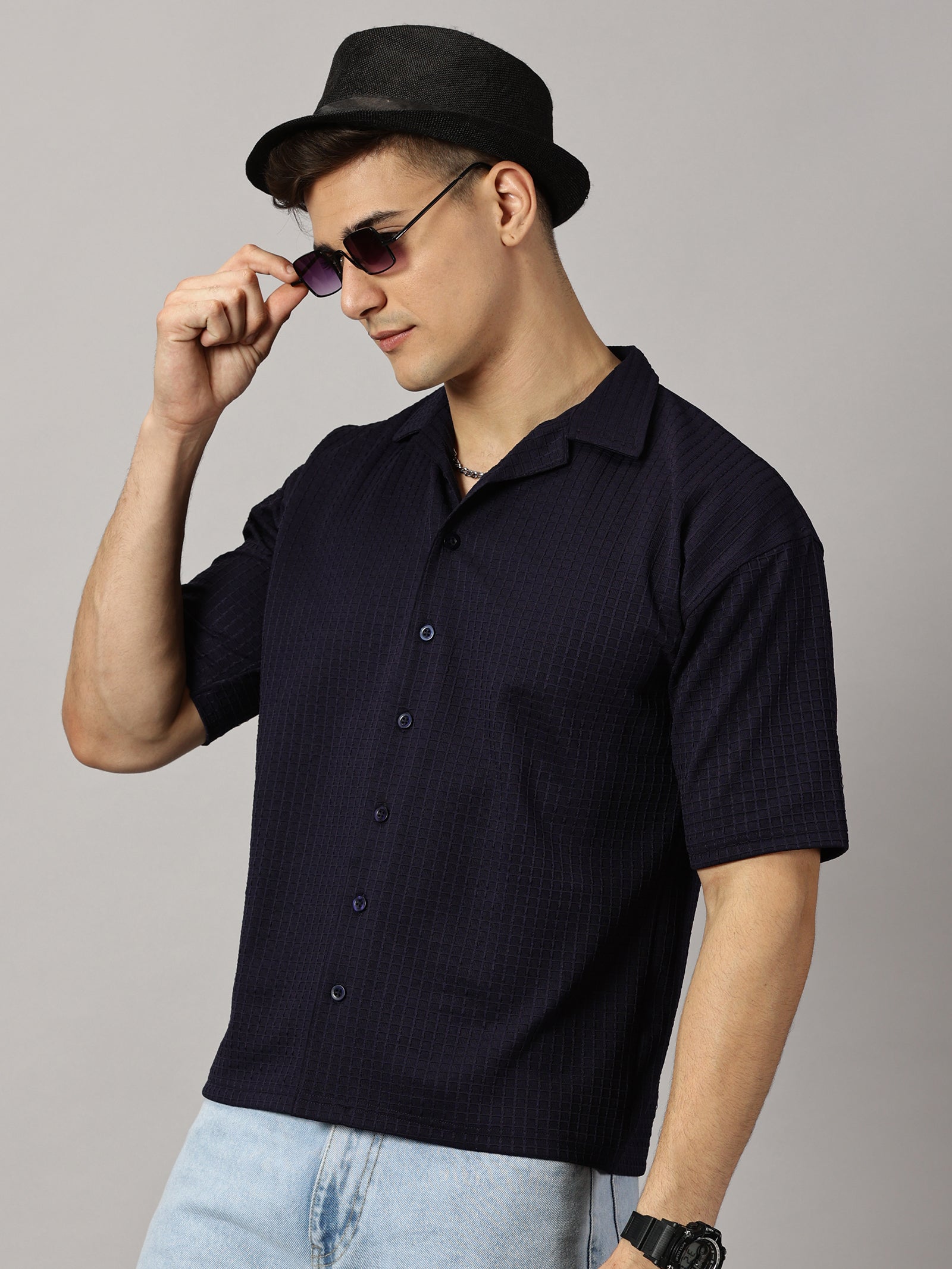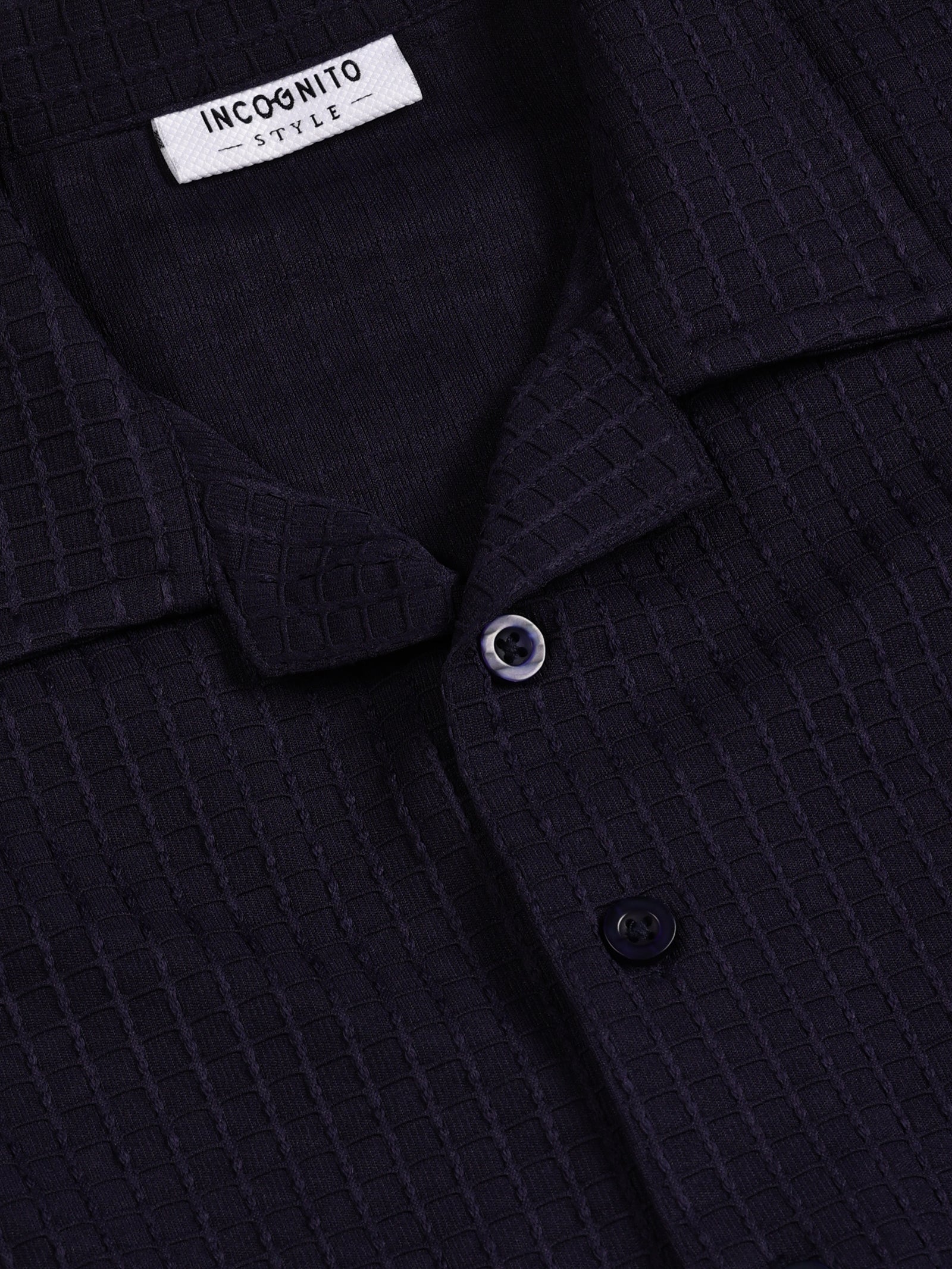 This oversized textured navy shirt is designed for comfort and style. Made with high-quality material, it features a textured design that adds a unique touch to any outfit. Perfect for a casual day out or a dressed-up event, this shirt is a must-have for any fashion-forward individual.