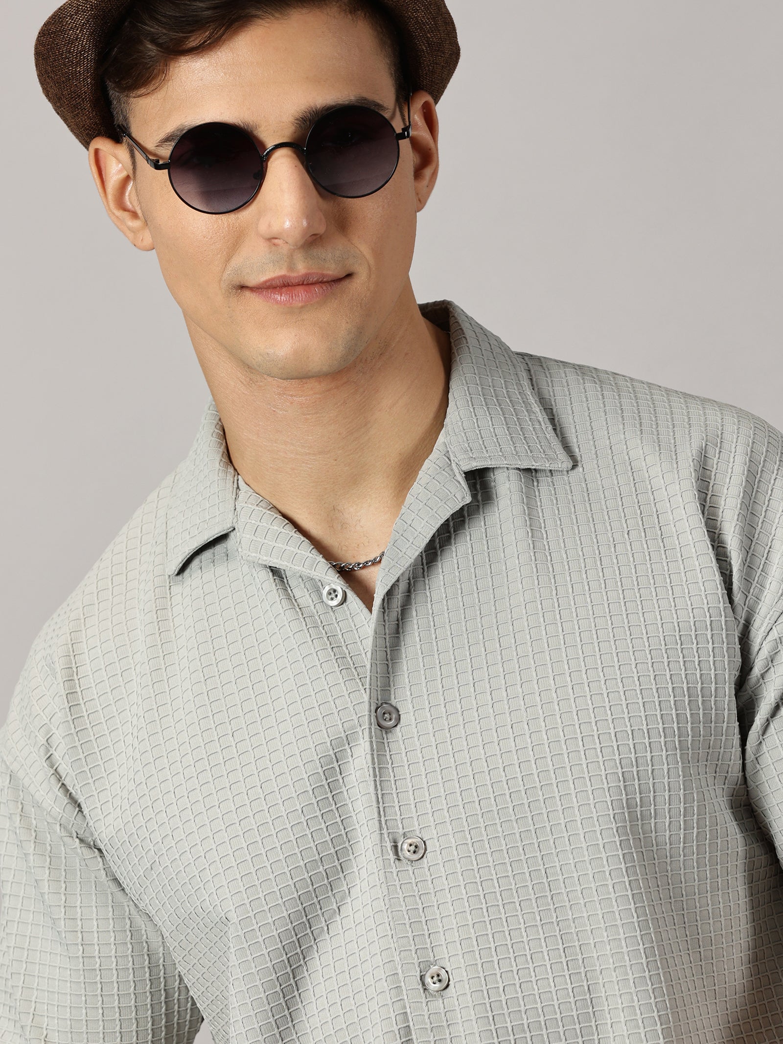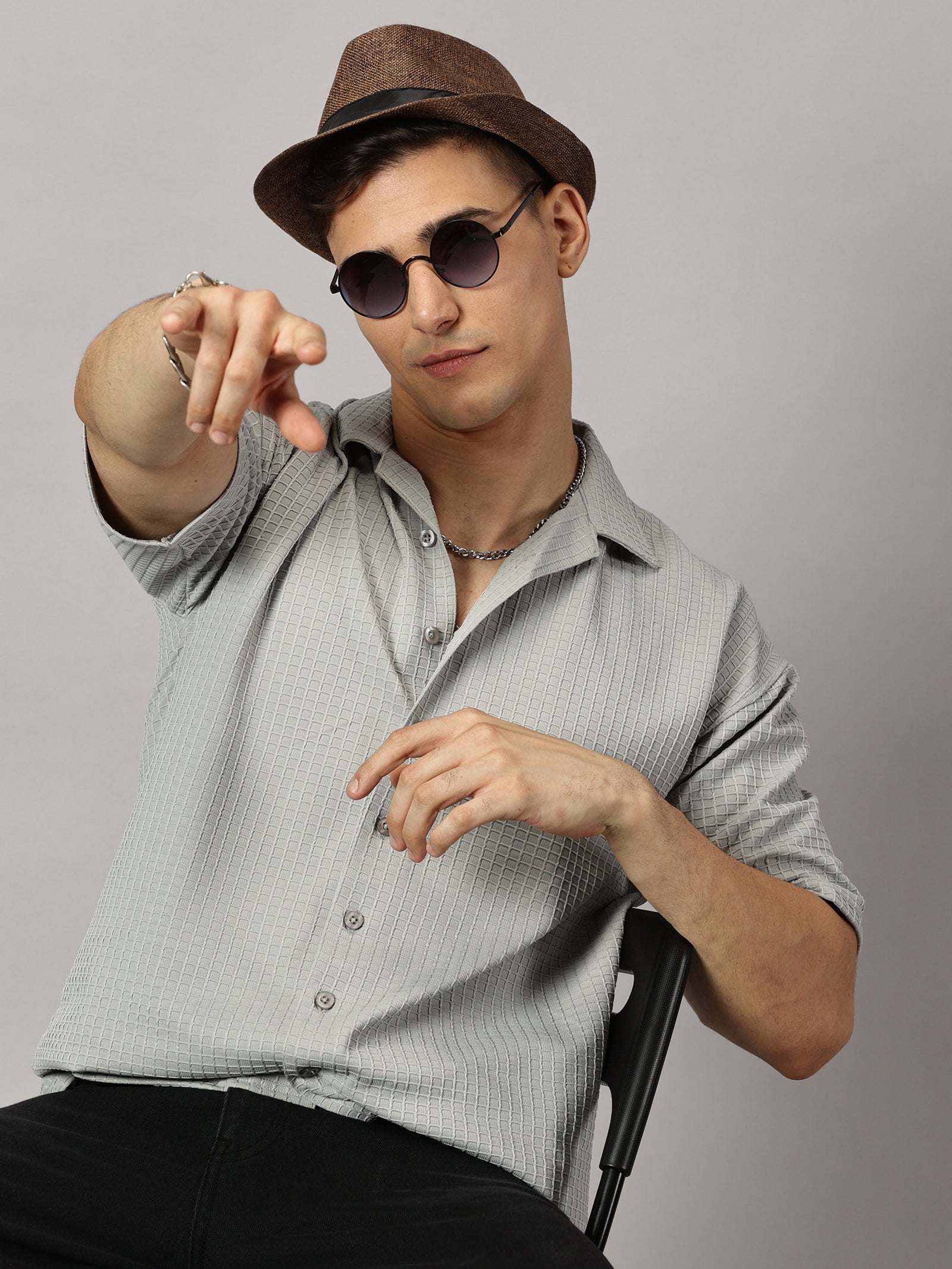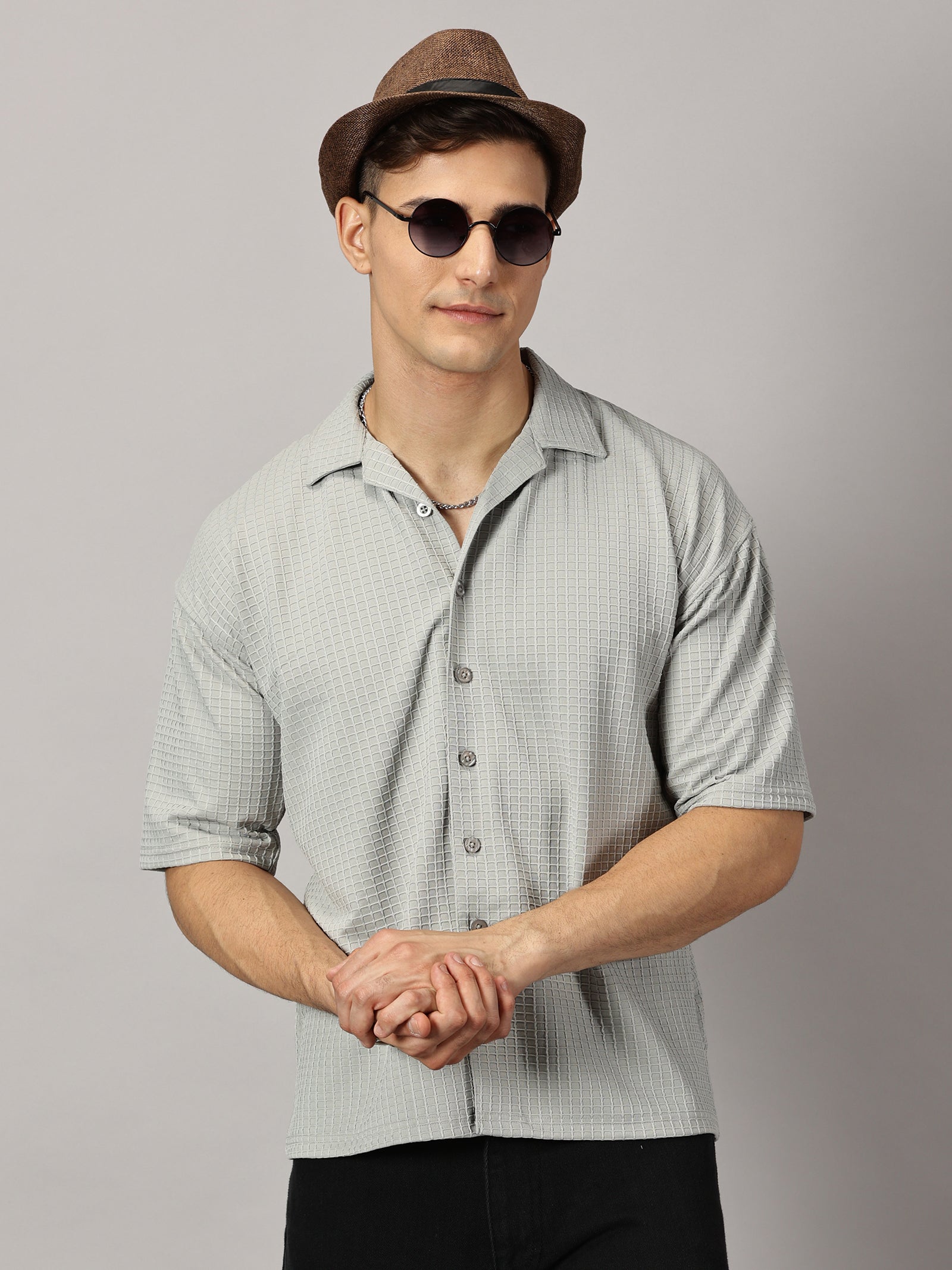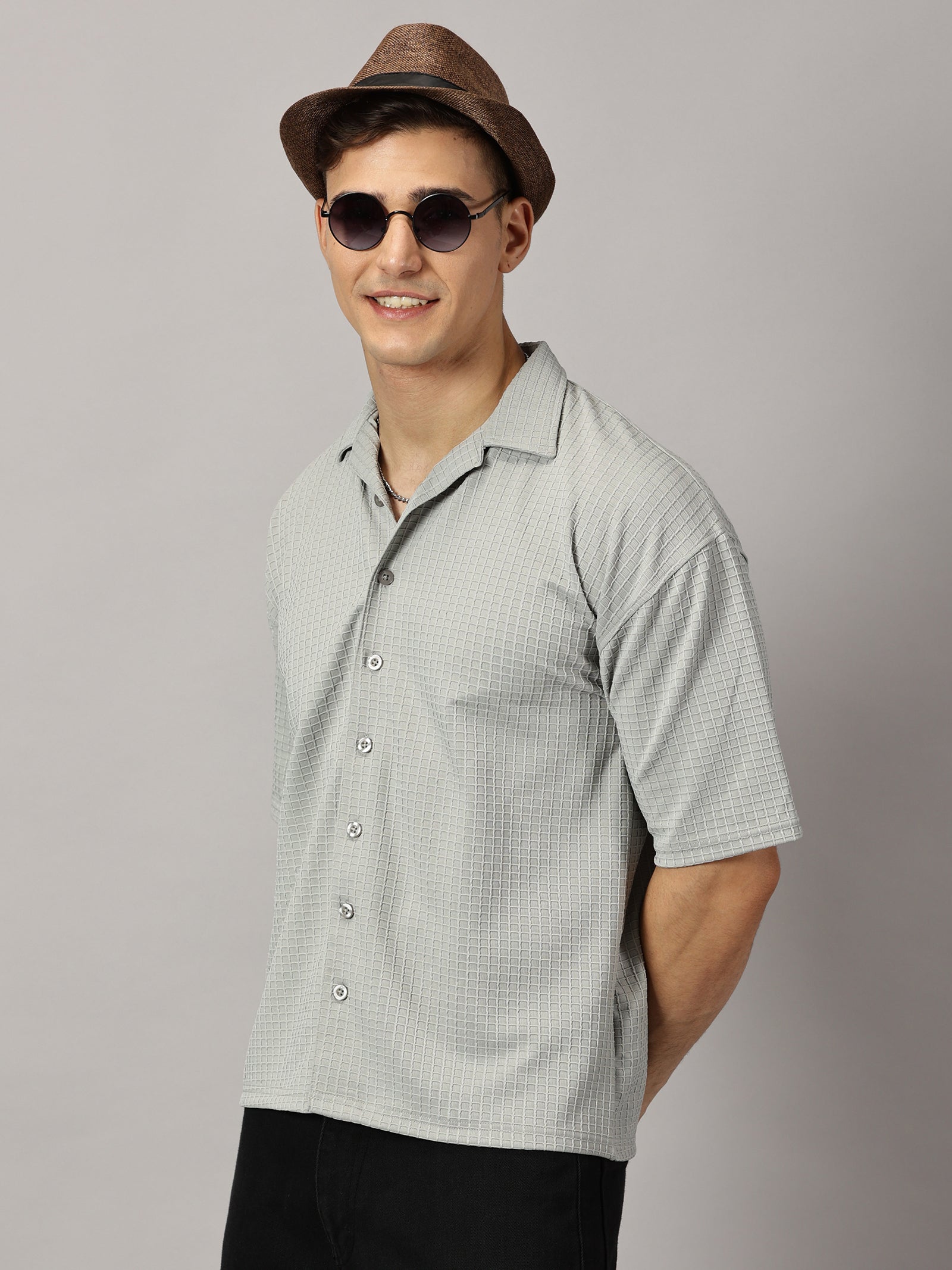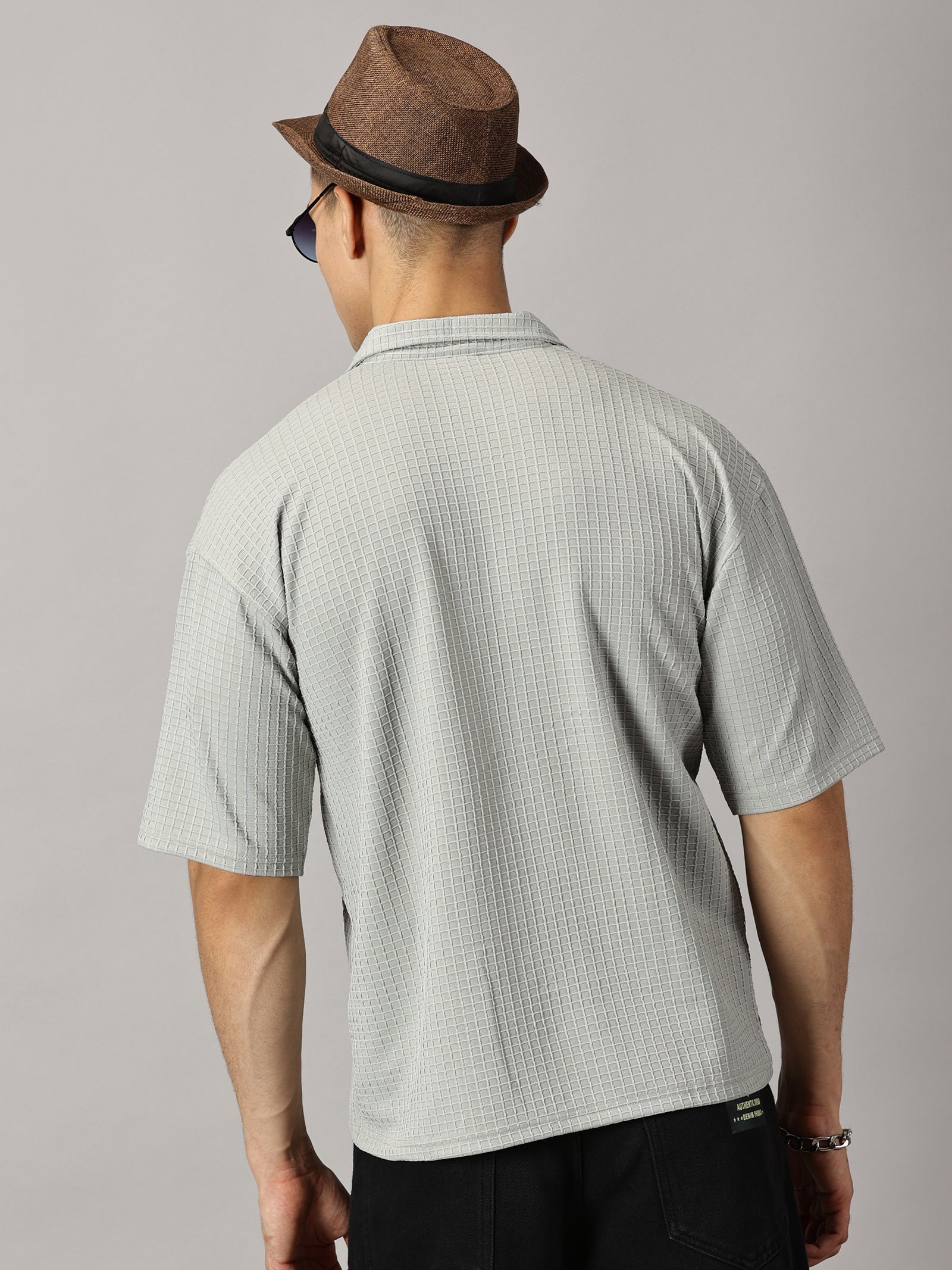 Crafted from high-quality textured Jacquard fabric, our Oversized Textured Steel Gray Shirt exudes effortless style and sophistication. The oversized fit adds a touch of modernity, making it a versatile wardrobe staple. Elevate your look and feel confident with this must-have piece.