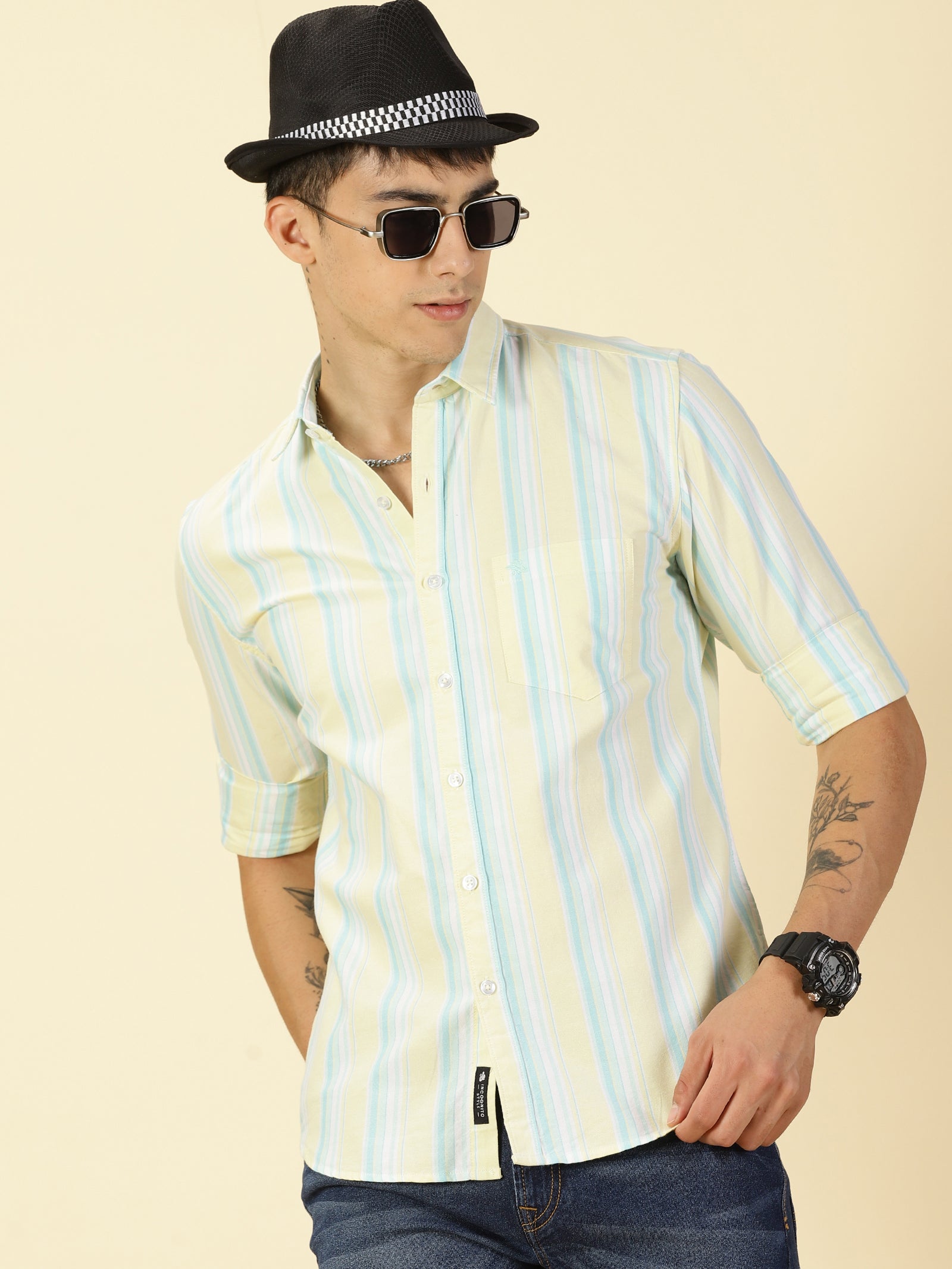 Oxford Striped Mint and Yellow Shirt
