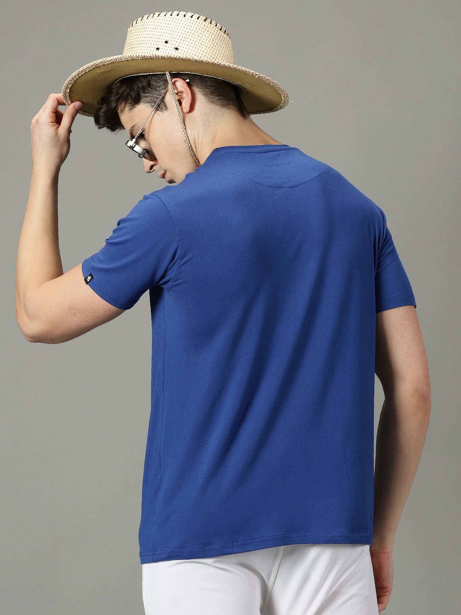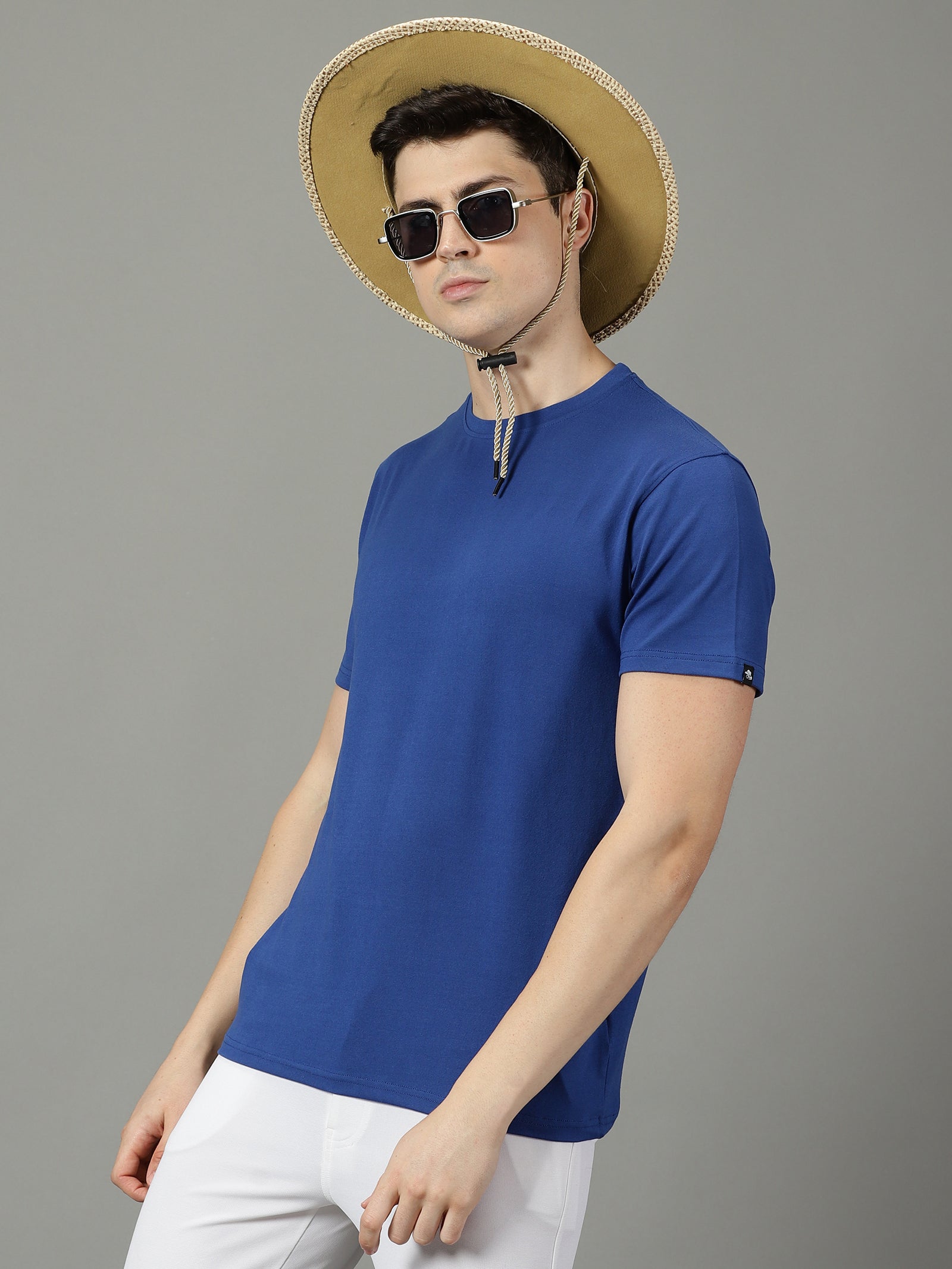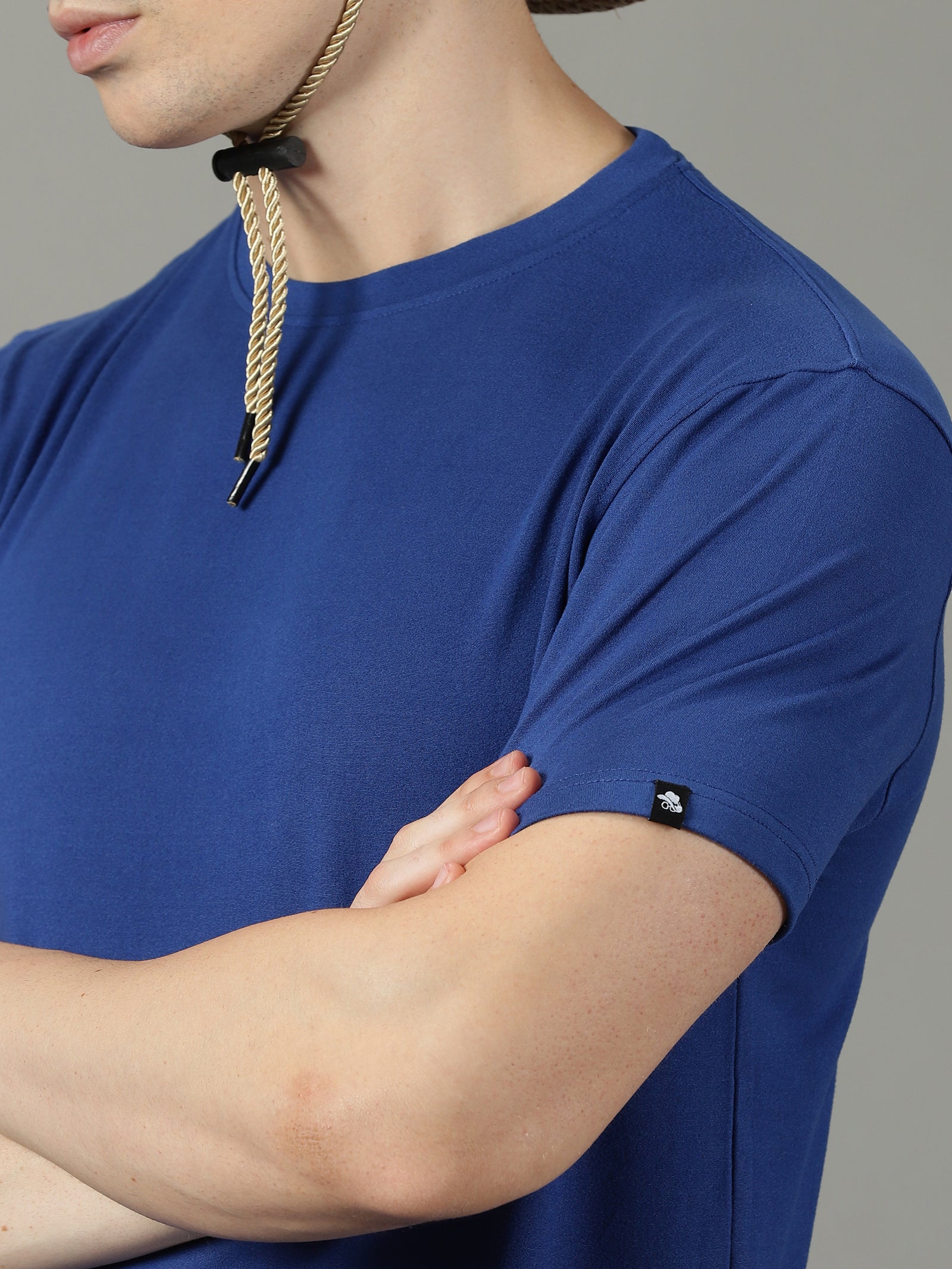 Shibaji Naik Royal Blue Solid Crew Neck T-shirt