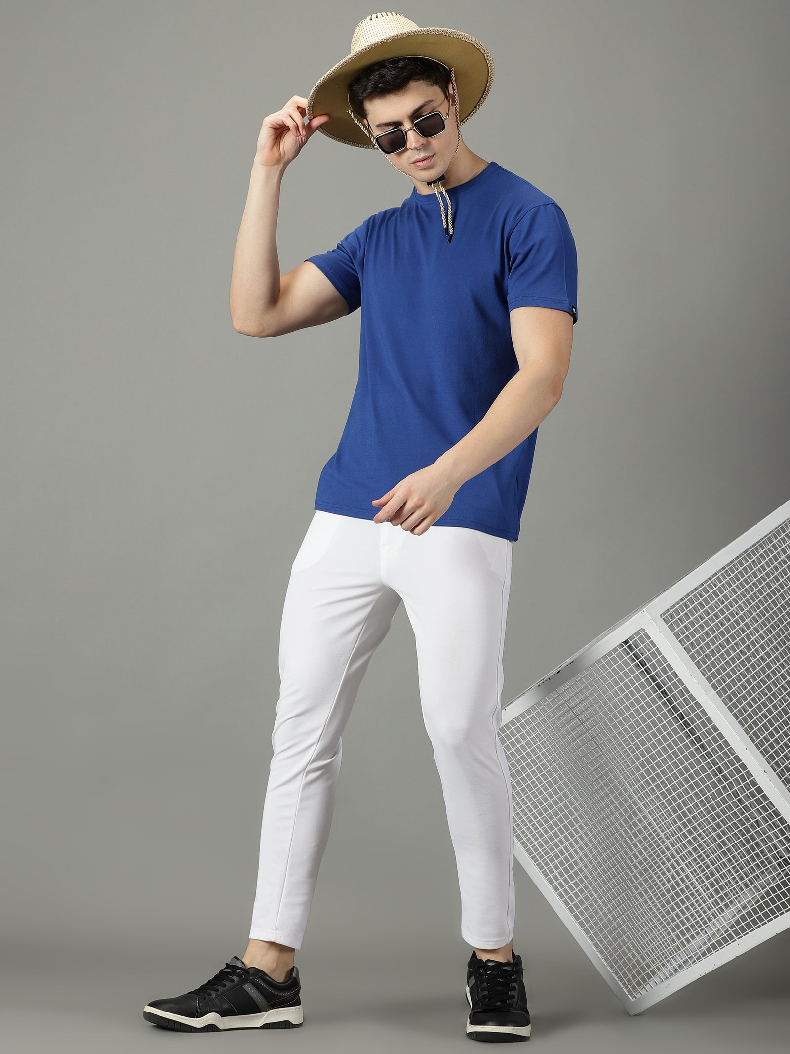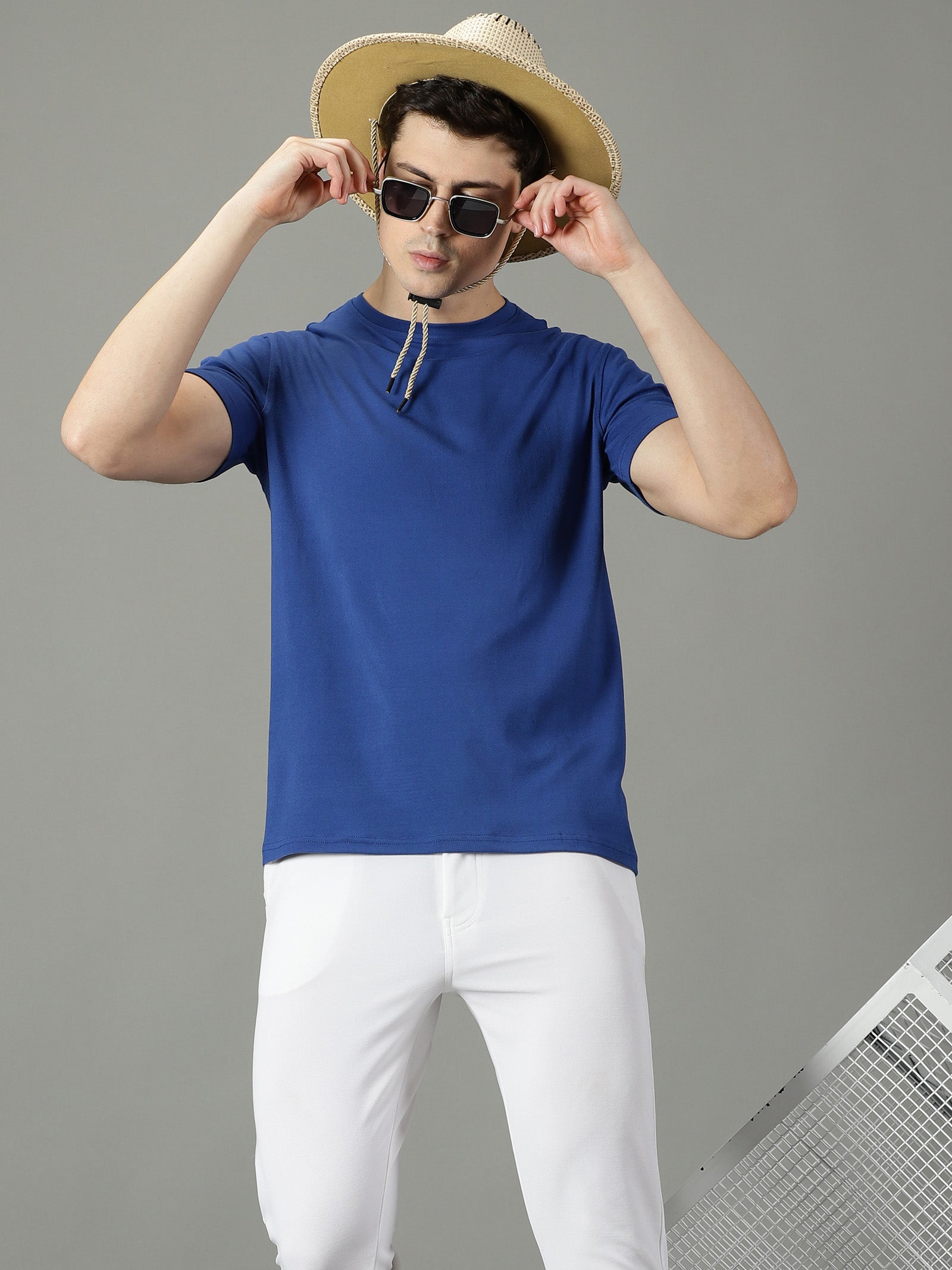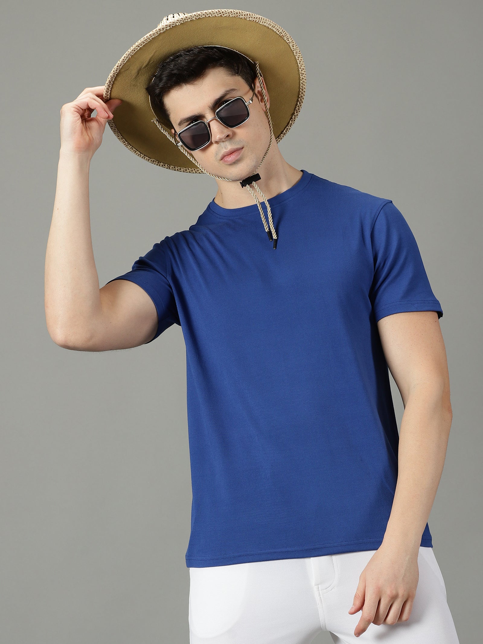 Shibaji Naik Royal Blue Solid Crew Neck T-shirt