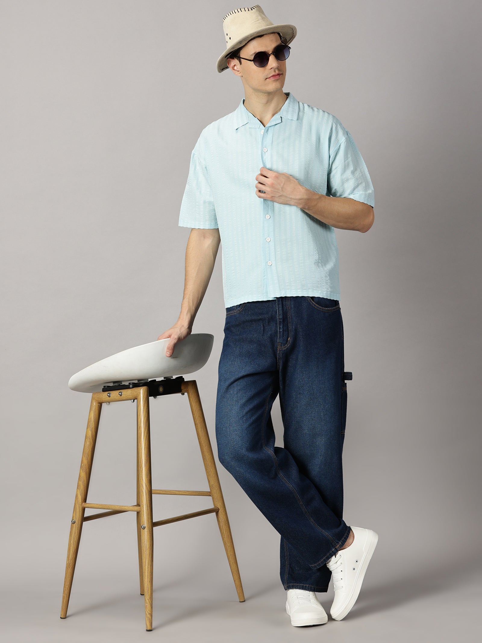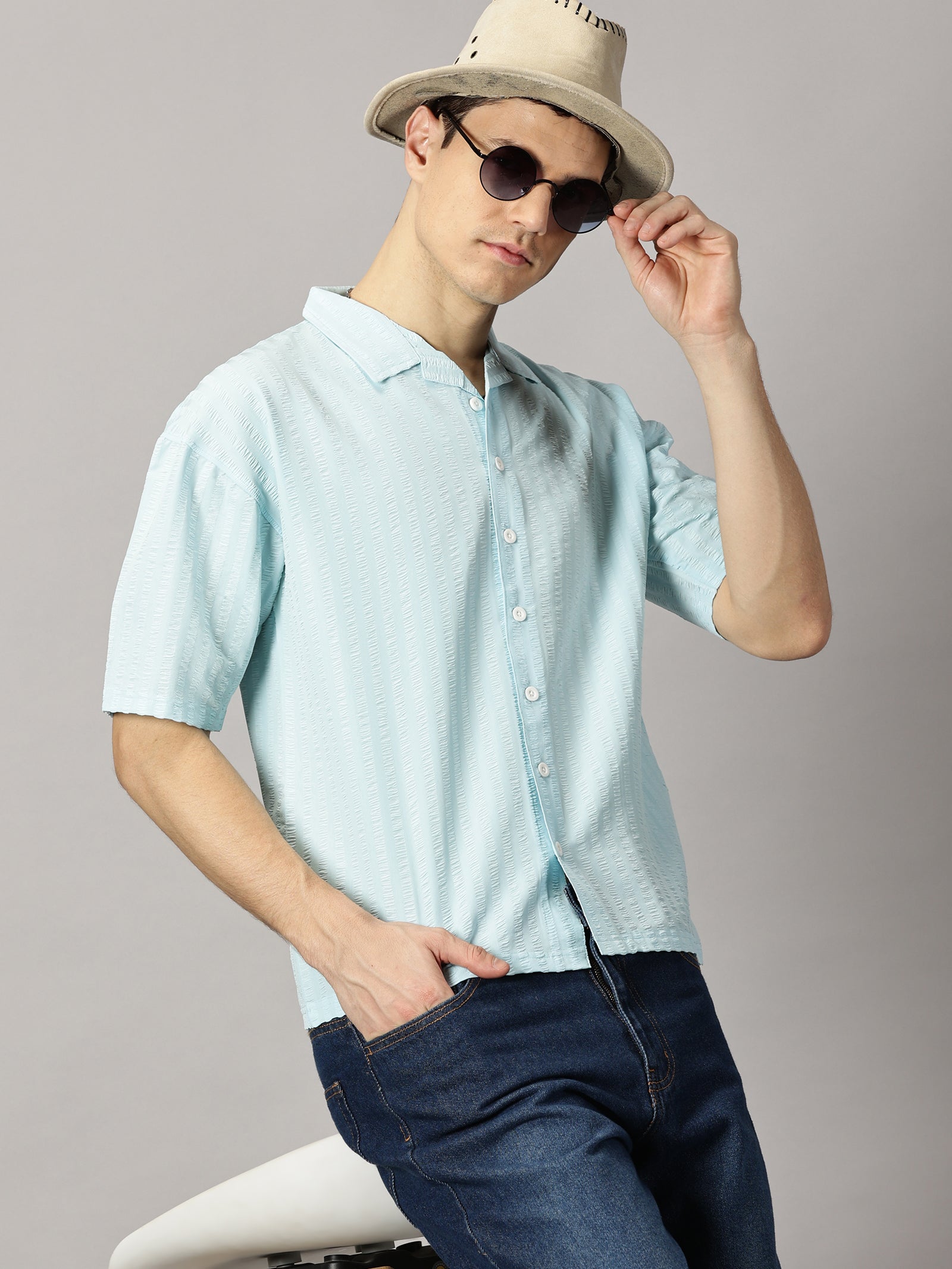 Sky Blue Stripes Oversized Shirt